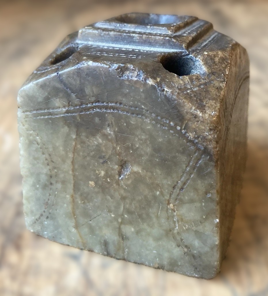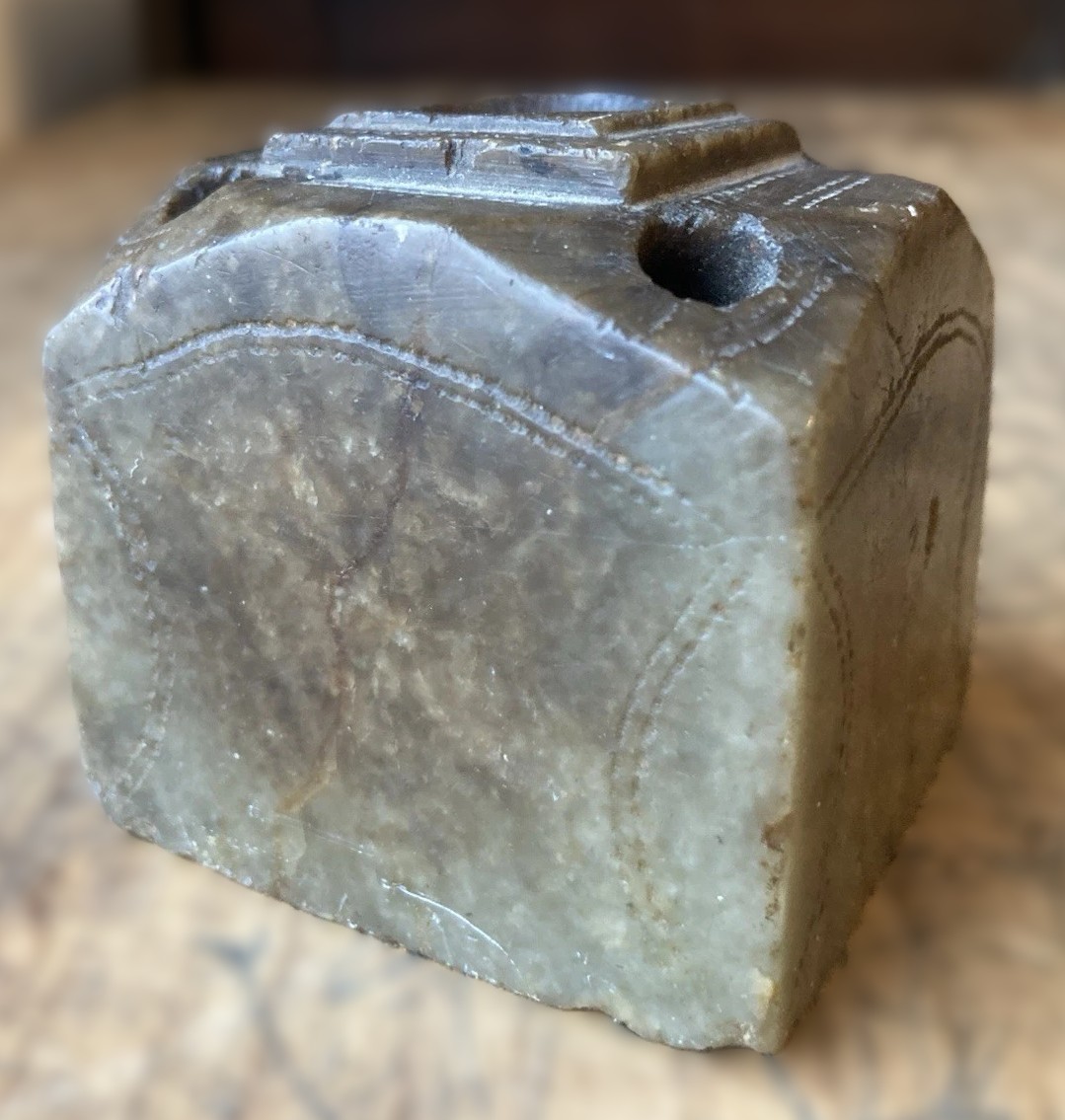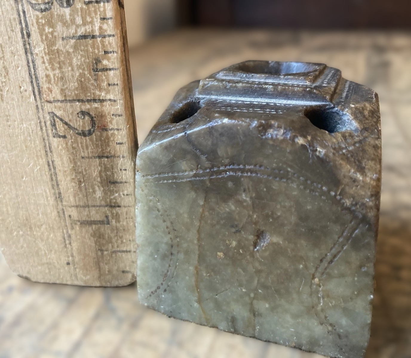 - Rarity: While simple soapstone inkwells were once common in colonial homes, pieces with this specific level of decorative “lace” carving are rare.
