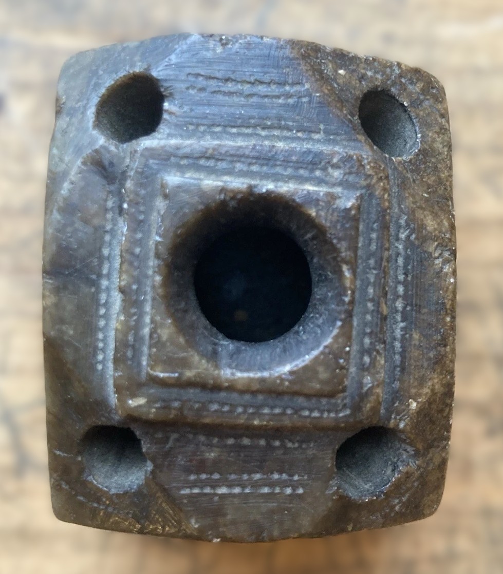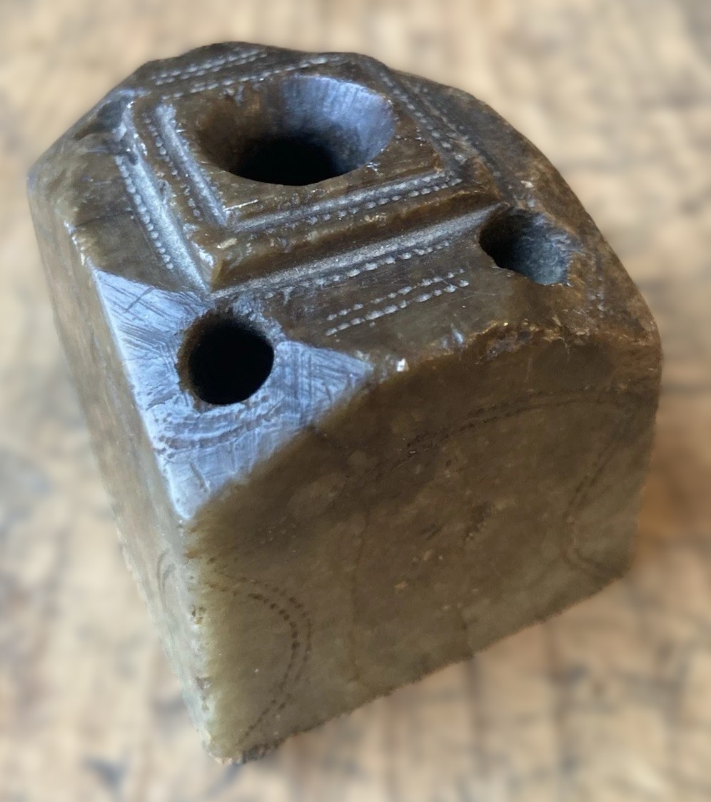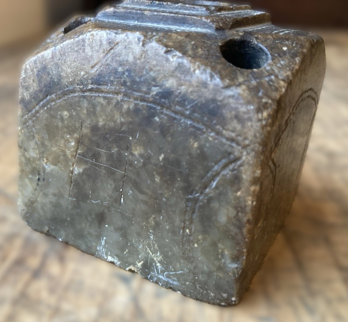 - Rarity: While simple soapstone inkwells were once common in colonial homes, pieces with this specific level of decorative “lace” carving are rare.