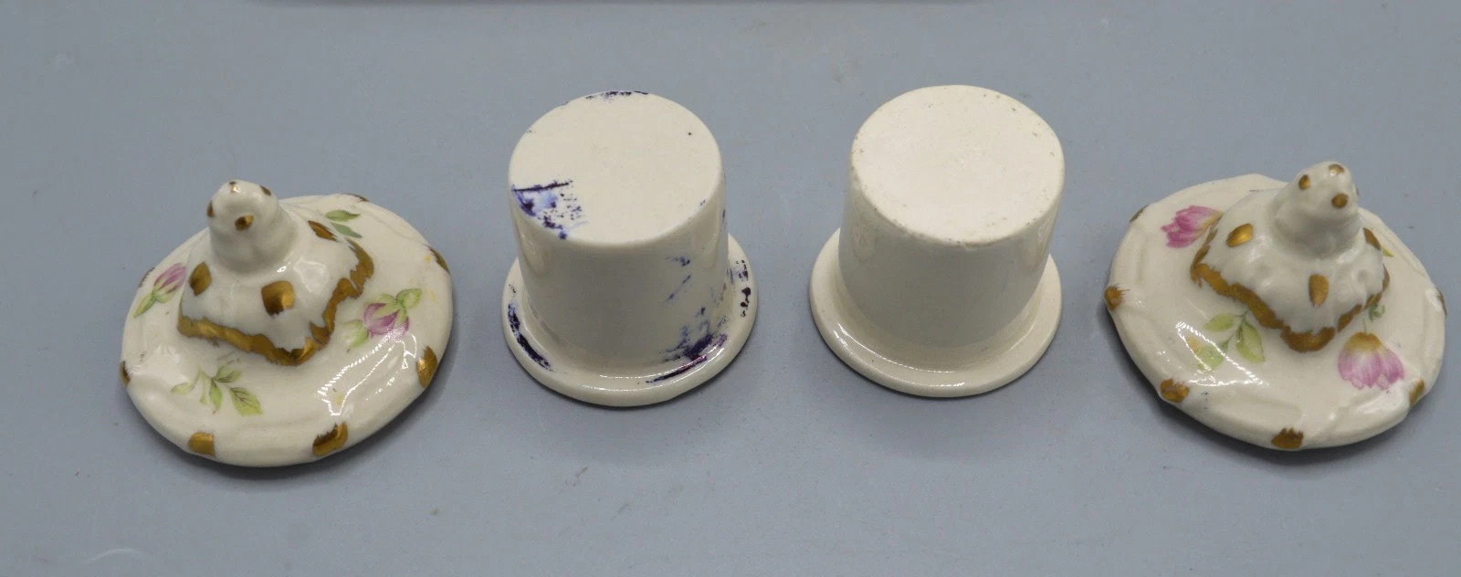 • Lids: The domed lids have molded gold finials.