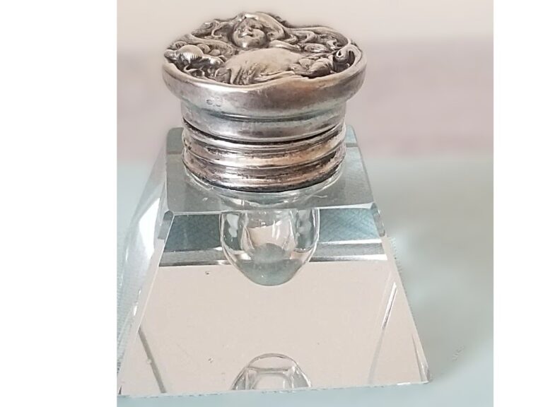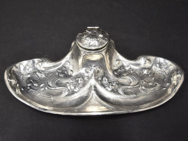 Brass Inkwell with Stylized Motifs and “B.B.” Mark