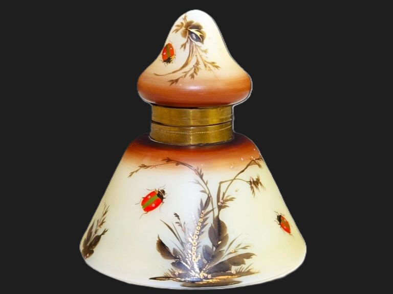 Bohemian Art Glass Inkwell with Water Lily Overlay