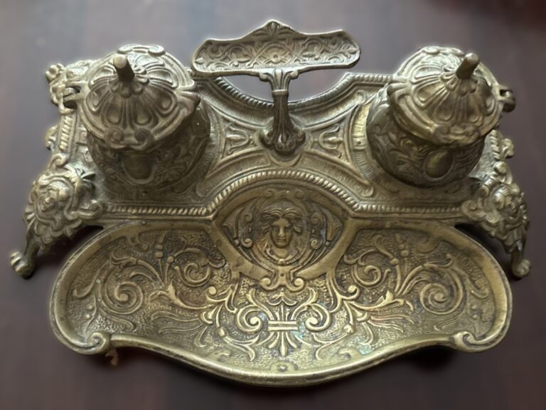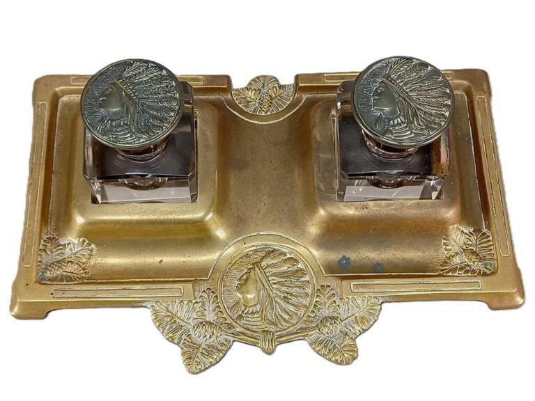 Brass Inkstand – Native American Theme.