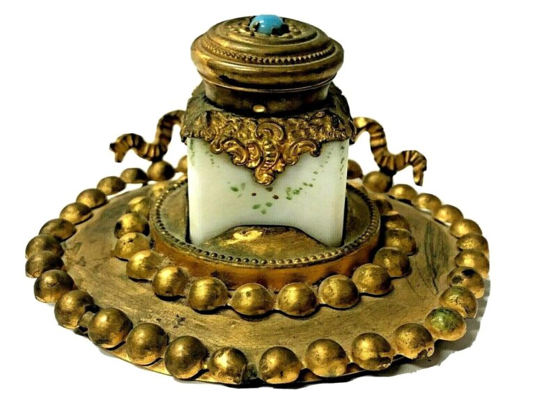 Milk Glass Inkwell on Gilded Brass Base