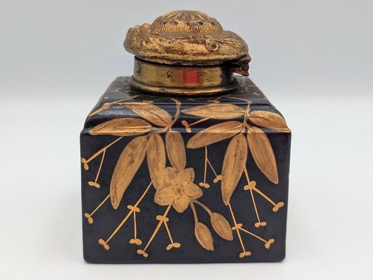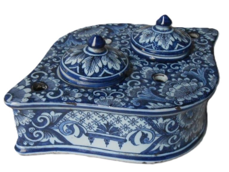 Lacquered Inkstand with Old Paris Porcelain Inkwell
