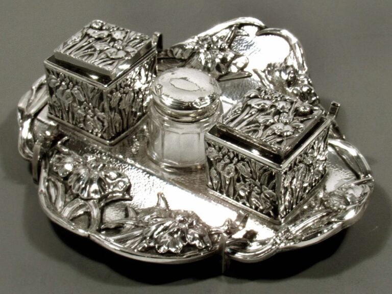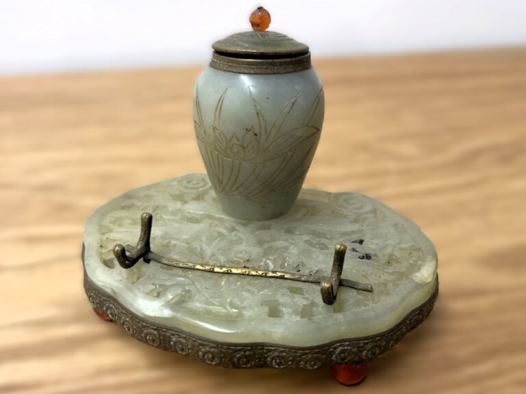 Wand Hing Chinese Export Silver and Jadeite Inkstand