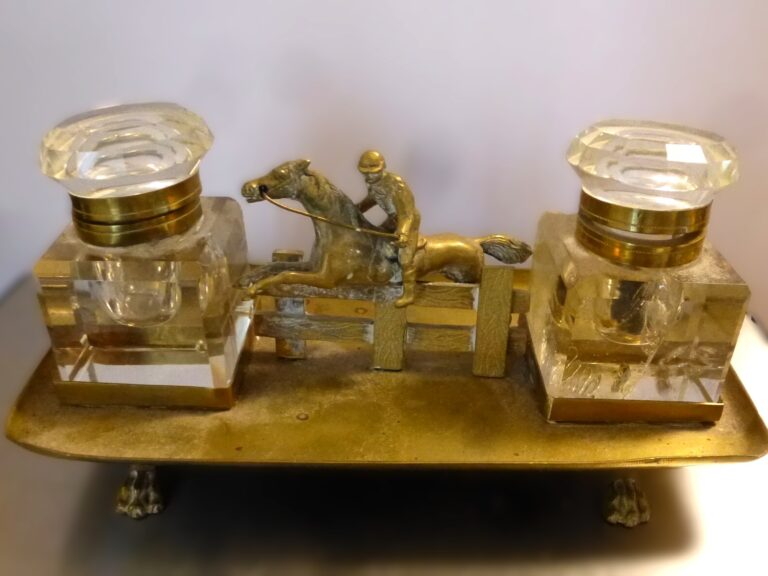 French Empire Style Bronze and Rouge Marble Double Inkstand