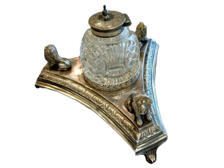 Triangular Silver-plated Inkstand with Lions