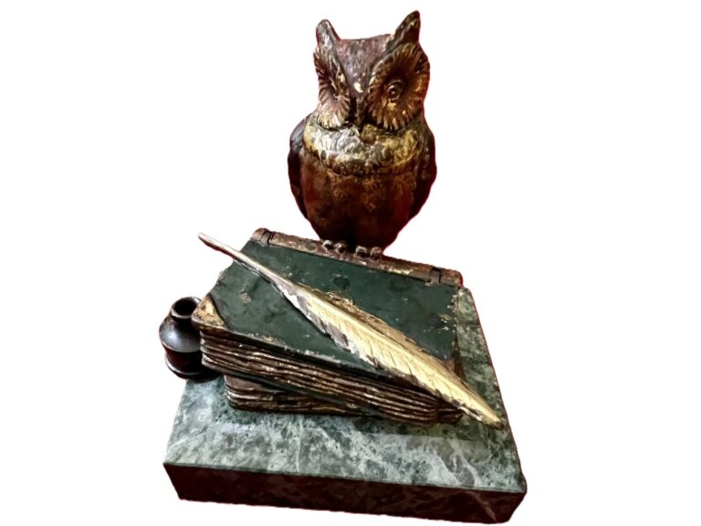 Bronze Owl Perched atop Books