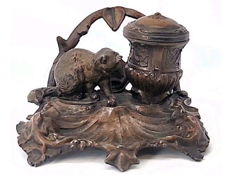 Spelter Cat Inkstand