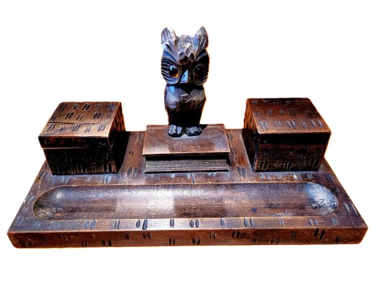 Carved Wooden Inkstand with Owl