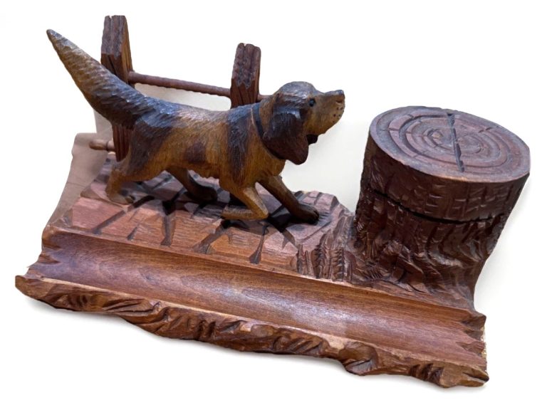 Hand-Carved Inkstand with a Dog