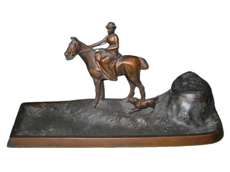 Bronze Hunting Dog Inkstand