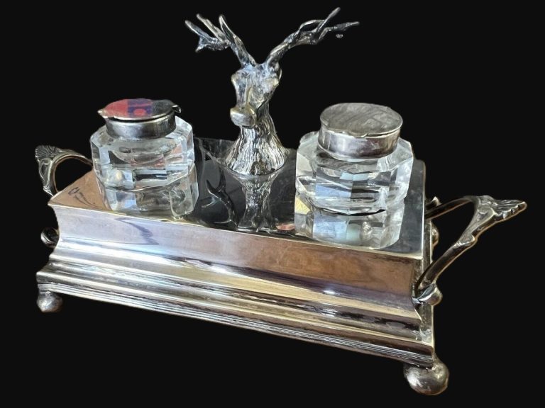 Silverplated Stag Double Inkstand