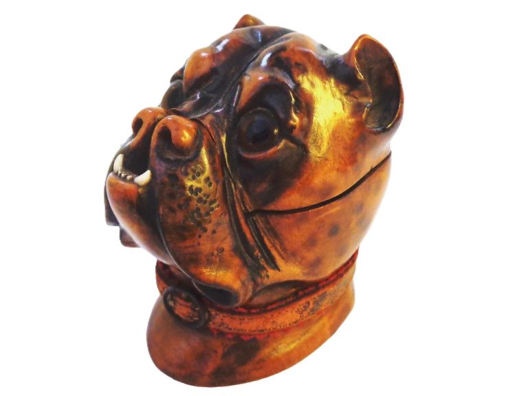Hand-Carved Lignum Vitae Dog’s Head Inkwell