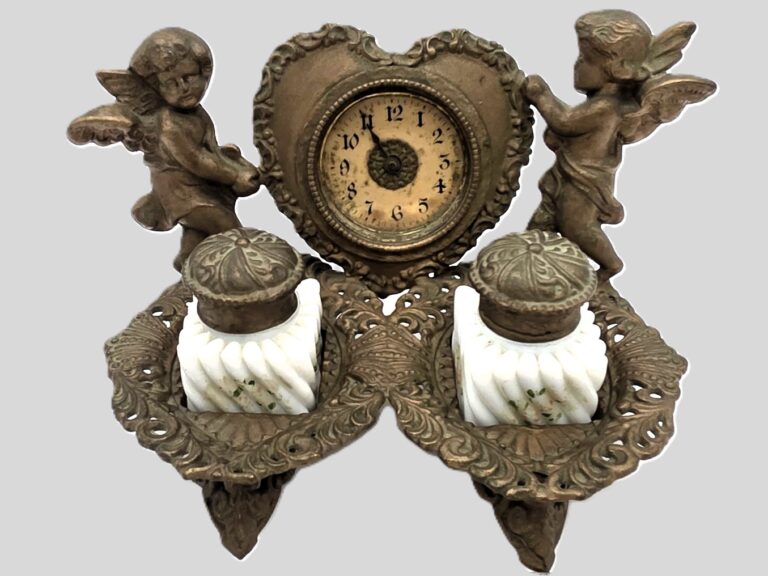 Double Inkstand with Cherubs and Heart-Shaped Clock