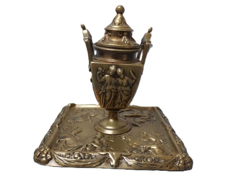 Brass Inkstand with Chariot Scene