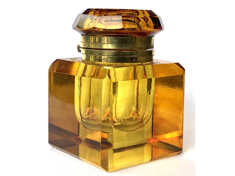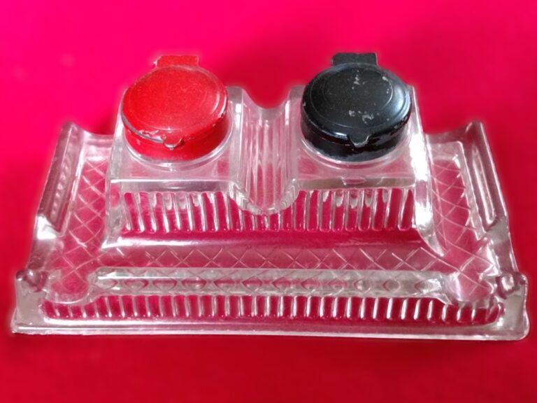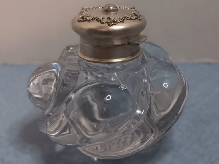 Glass Inkwell with Portuguese Silver Repoussé Lid