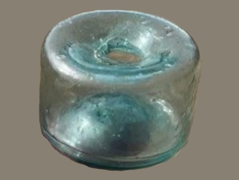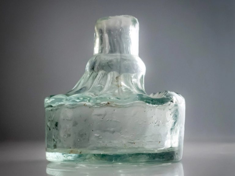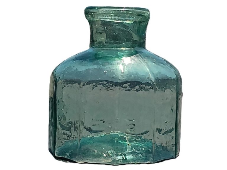 Aqua Glass “Burst-Off” Ink Bottle (c. 1881)
