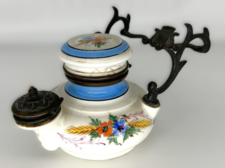 Teakettle Inkwell with Gold Embossed Floral Design