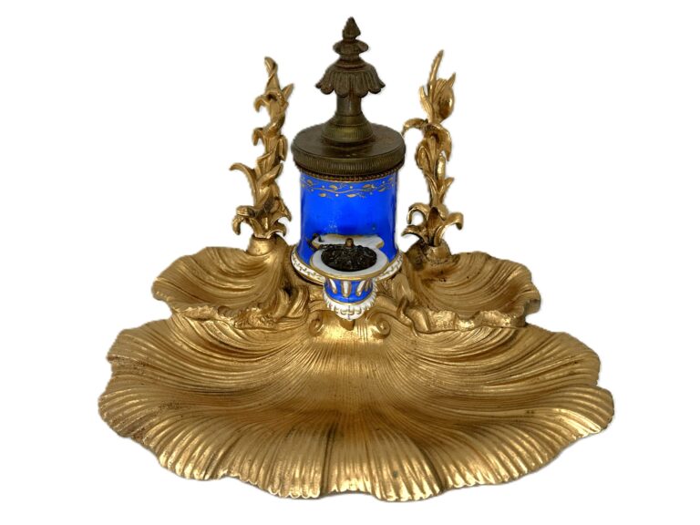 Gilded Cobalt French “Pump” Style Inkwell