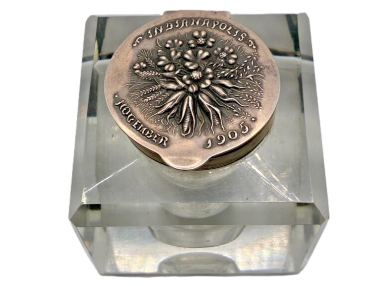 Crystal Glass Inkwell – Marked “Indianapolis November 1905”