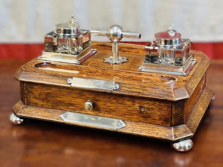 English Mahogany Standish – Silver Fittings