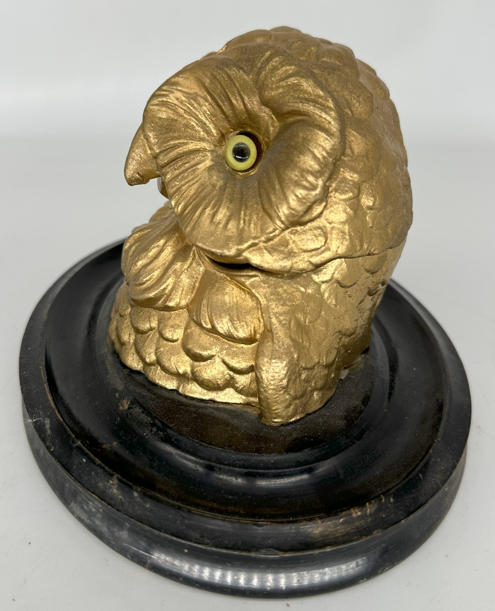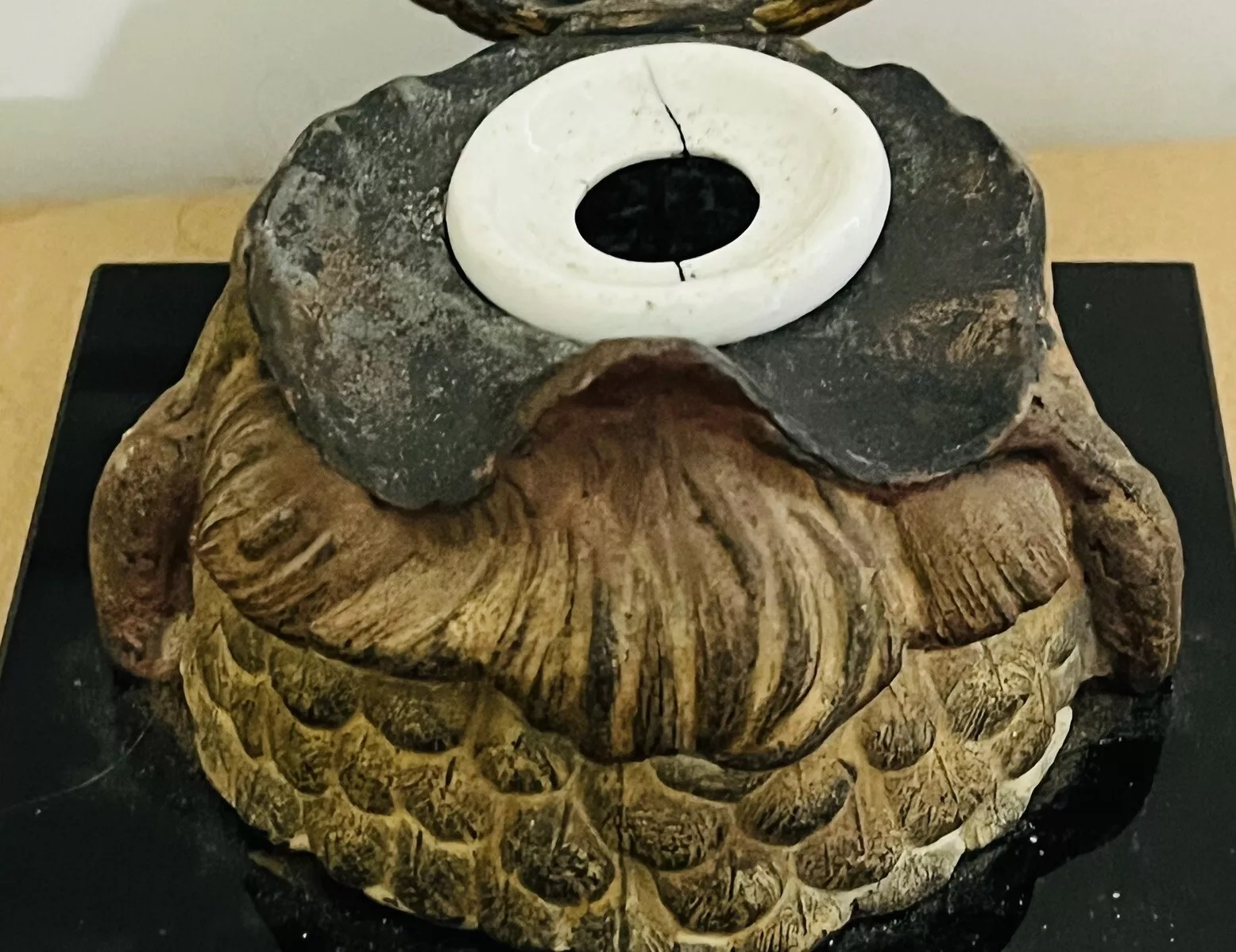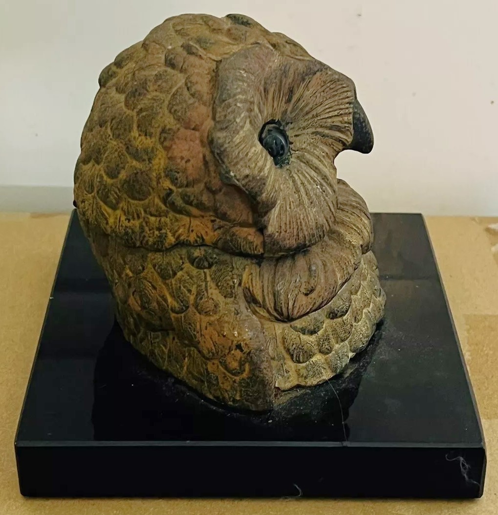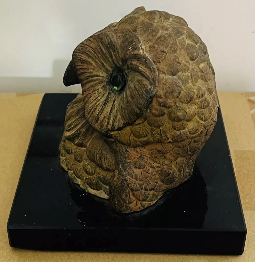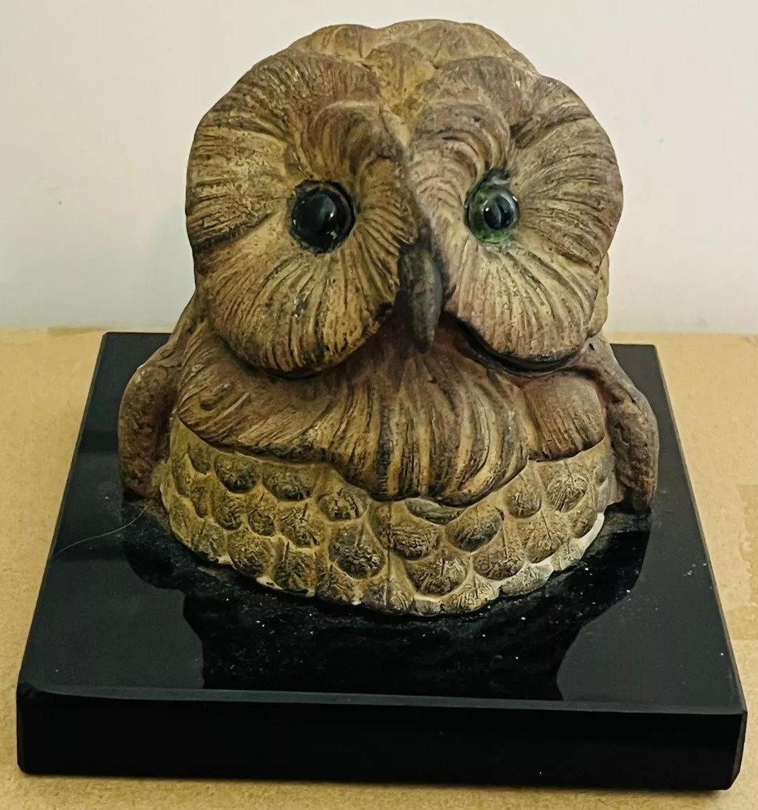 Owl #2 rests on a square granite base. Dimensions: 5” x 5” x 4” high. It sold for $89 in July 2024