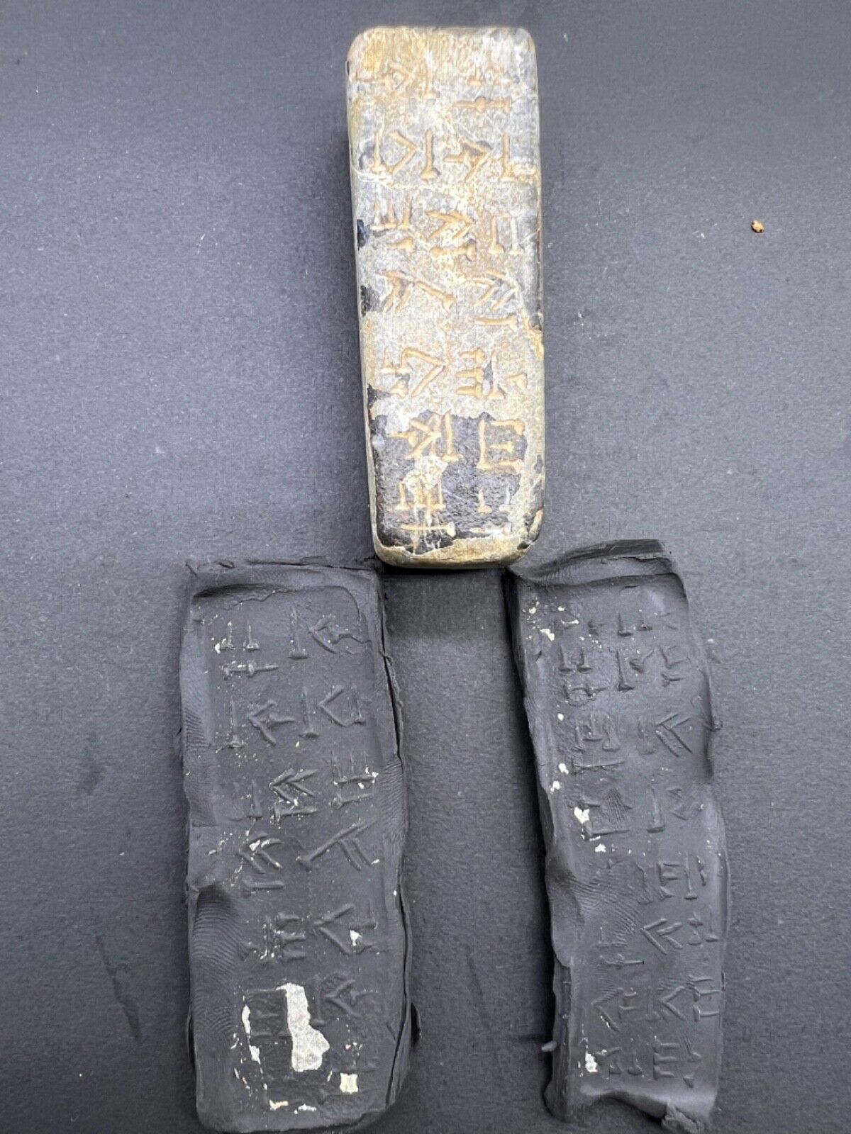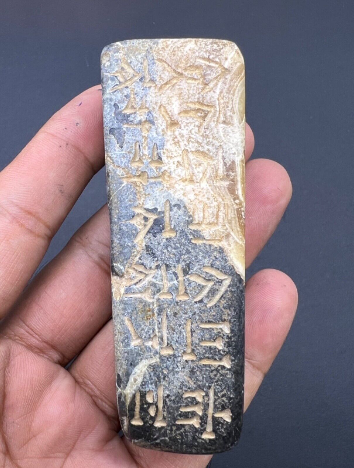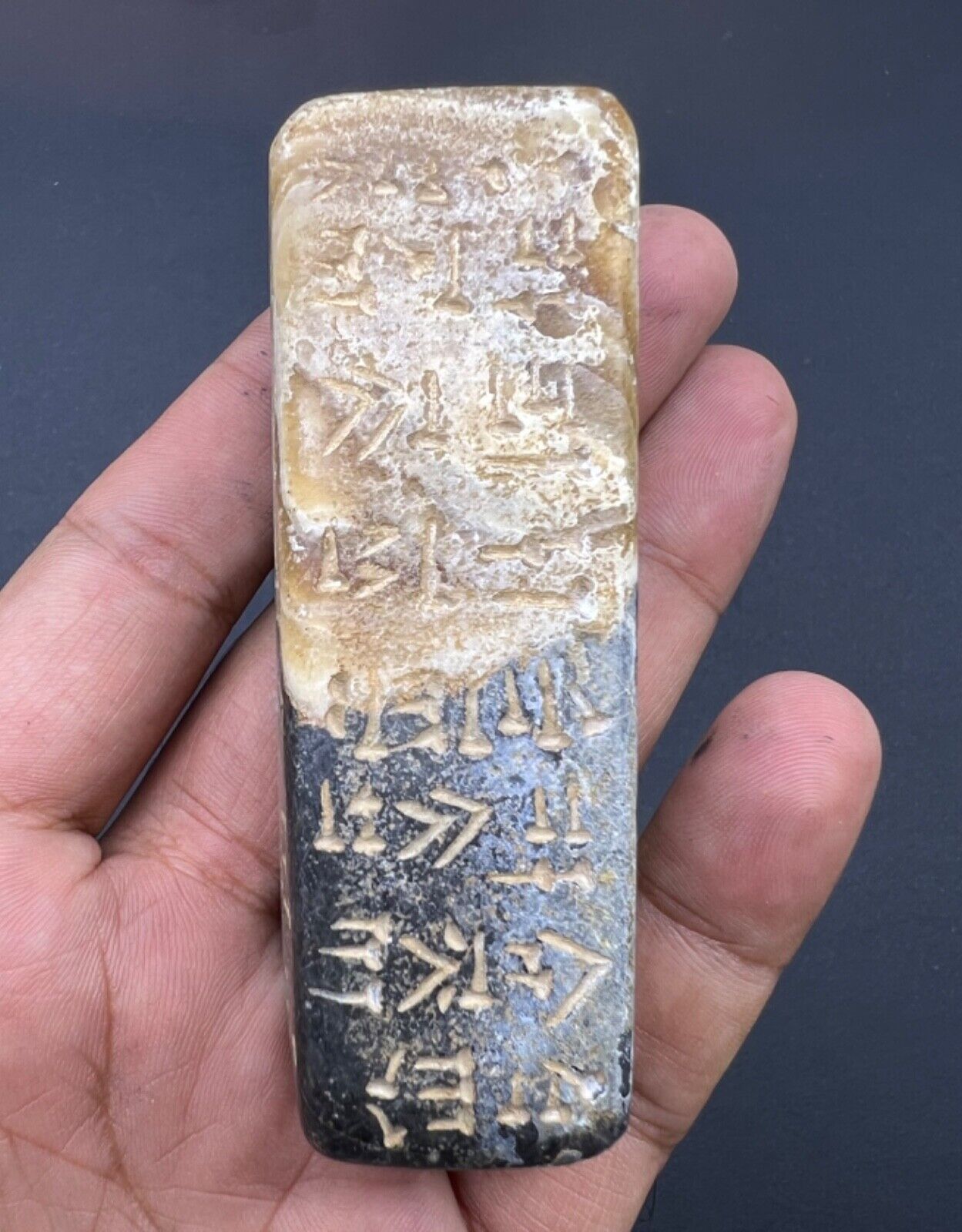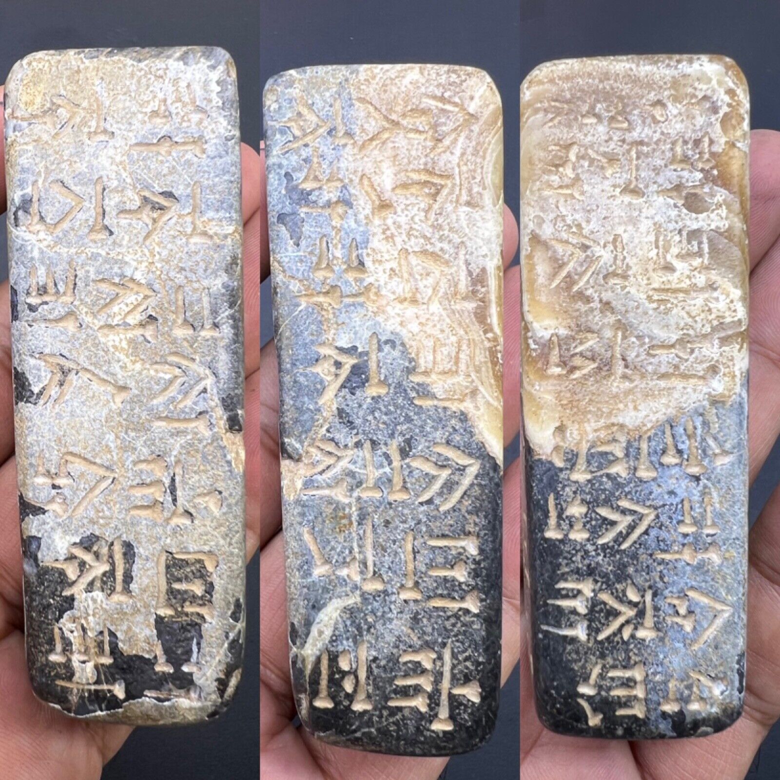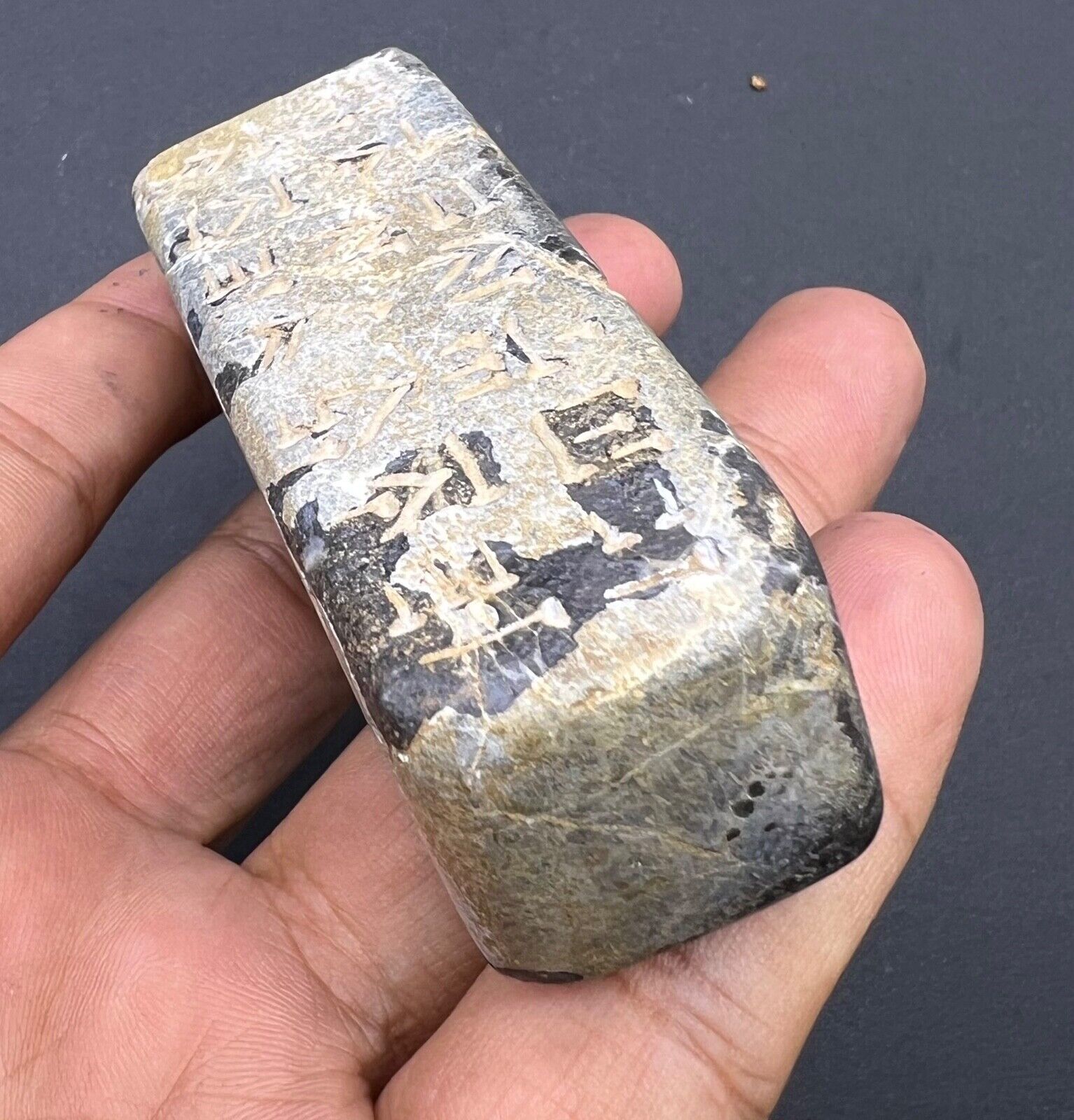 Alabaster stone inkwell with an early form of Sumerian writing.