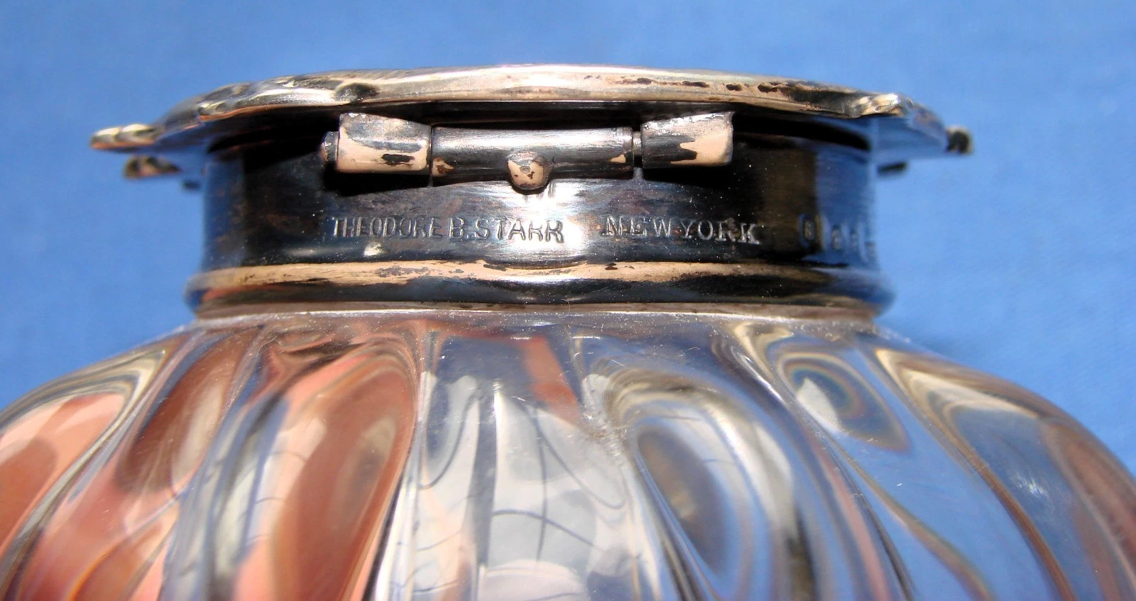 - Quality: Theodore B. Starr pieces are considered “tier one” American silver, equal in quality to Tiffany. The heavy gauge of the silver and the deep cutting of the glass confirm this was a luxury object for a wealthy household’s desk.