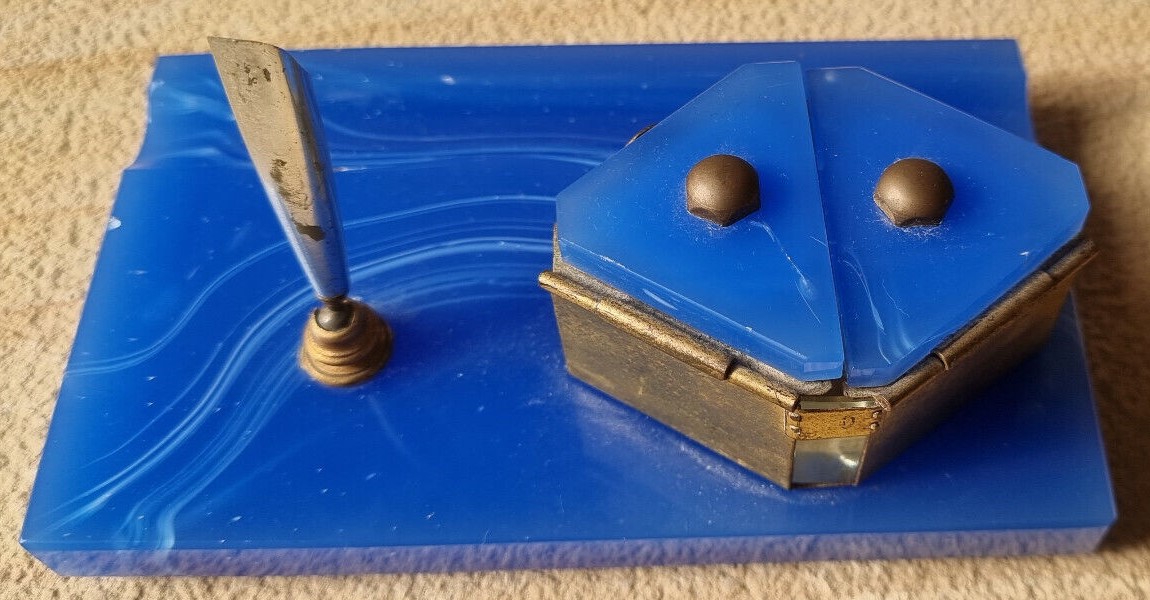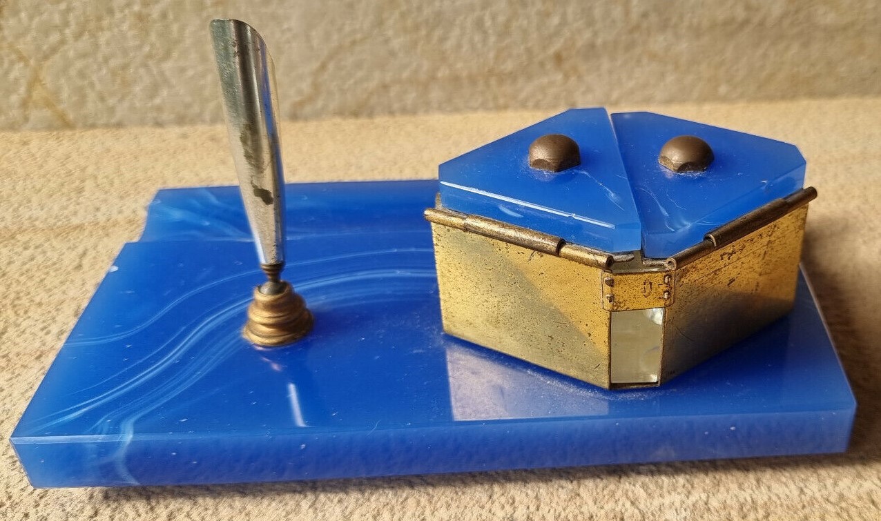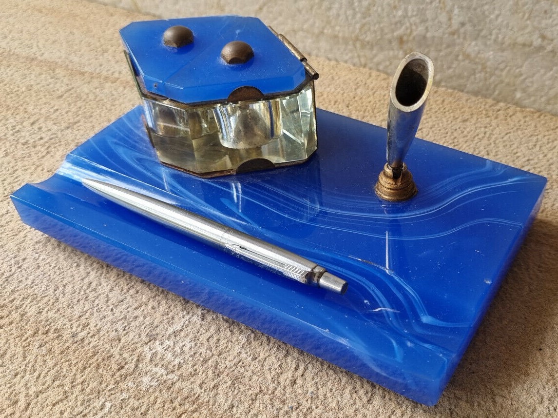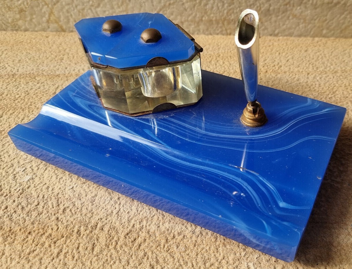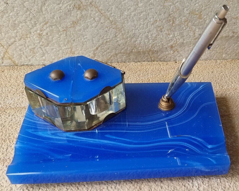 Art Deco Blue Glass Desk Piece
