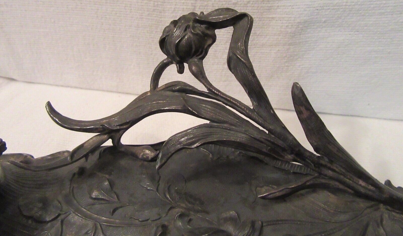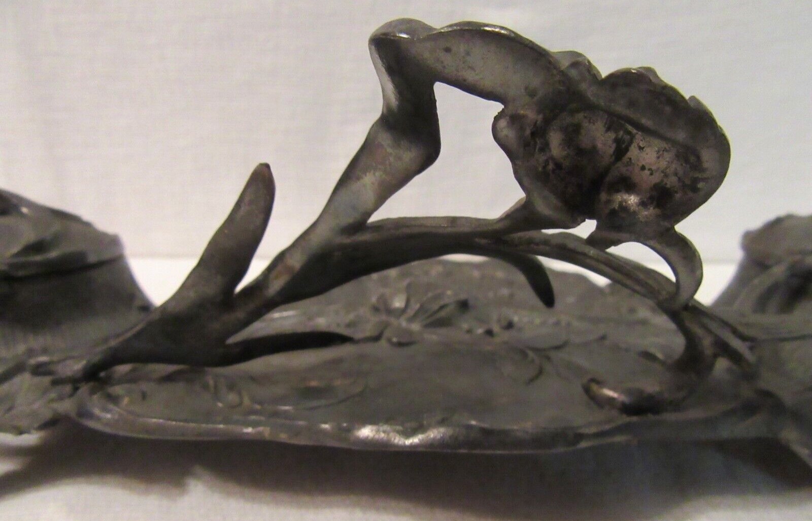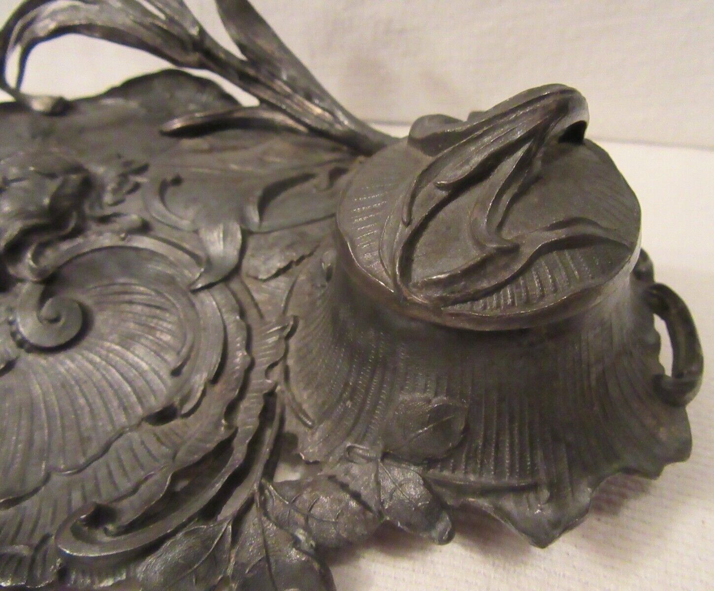 Celebrating nature’s forms, this Art Nouveau double inkstand features sweeping foliage and flowers with a shell-shaped pen tray.