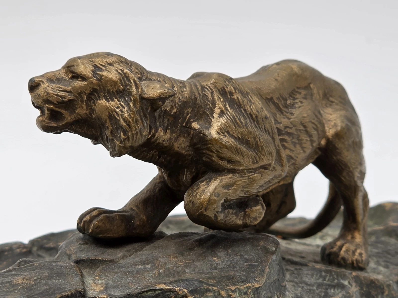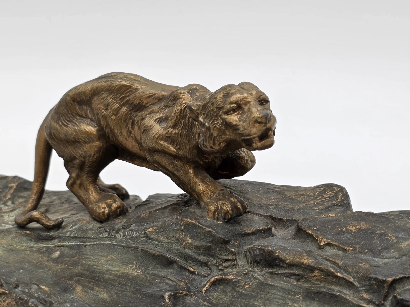 Austrian foundries (such as Bergman or Matthias Bermann) were famous world-wide for their animal figures. While this piece does not bear a specific foundry mark (like the famous “B in an urn”), the quality of the modeling—specifically the tension in the lioness’s pose—marks it as a quality piece of Viennese export art.
