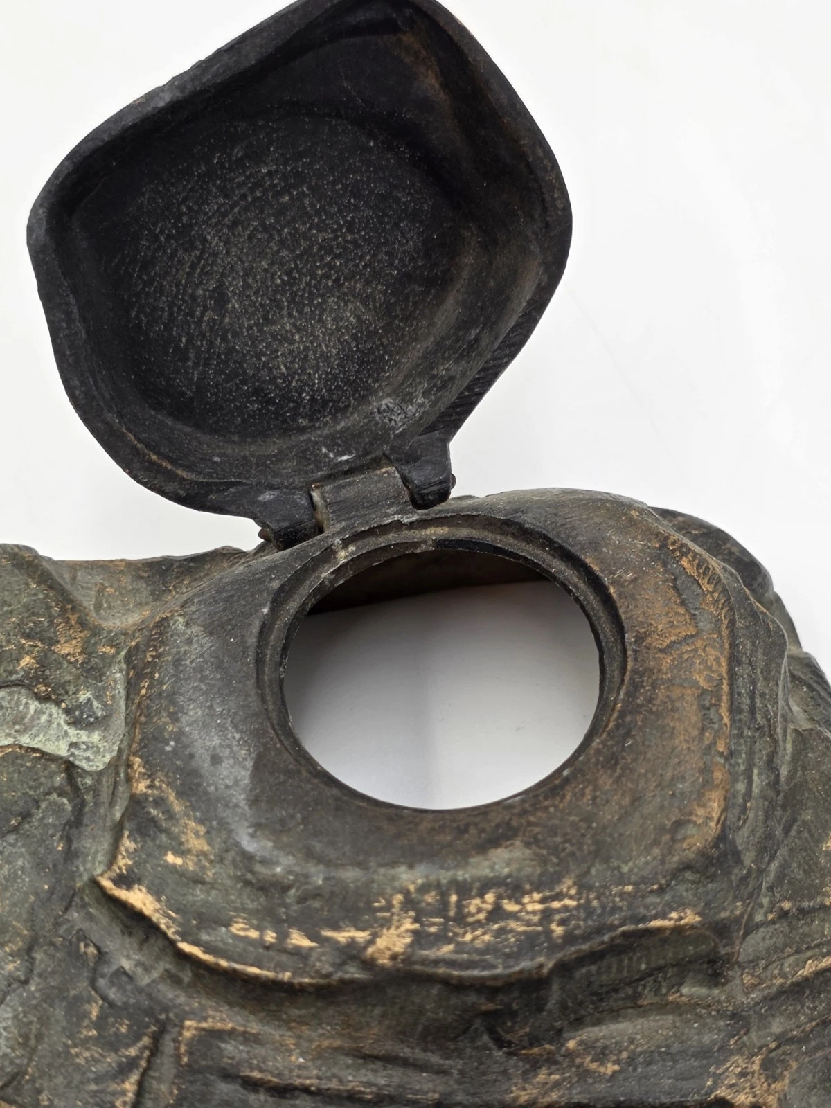 The piece is an example of the “Naturalist” school of desk accessories, where the functional elements (the inkwell) are disguised within a realistic sculpture.