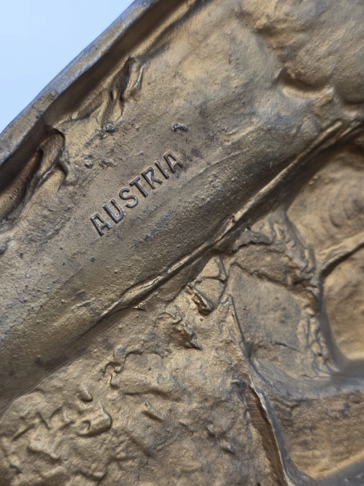 • Material: While often referred to as “Vienna Bronzes,” many of these export pieces (especially those with hollow undersides like this one were cast in spelter (a zinc alloy) and then given a high-quality bronze patina or “wash.” The golden color visible on the underside is a classic characteristic of Austrian spelter casting from this era.
