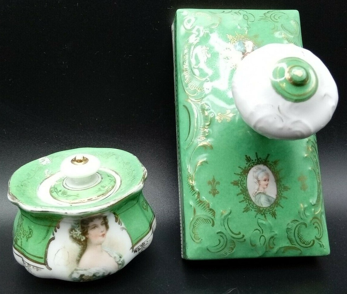 Hand-painted porcelain inkwell & matching blotter with Austrian mark.