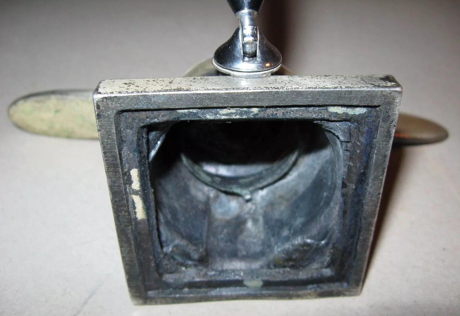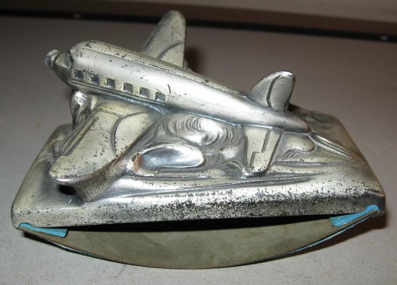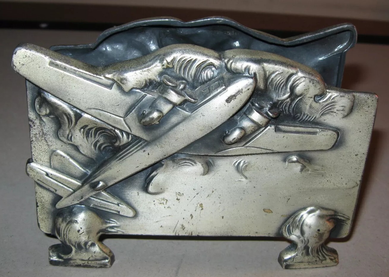 - Airplane Motif: The two panels of the letter holder feature a relief casting of an airplane, similar to the one on the rocker blotter.
