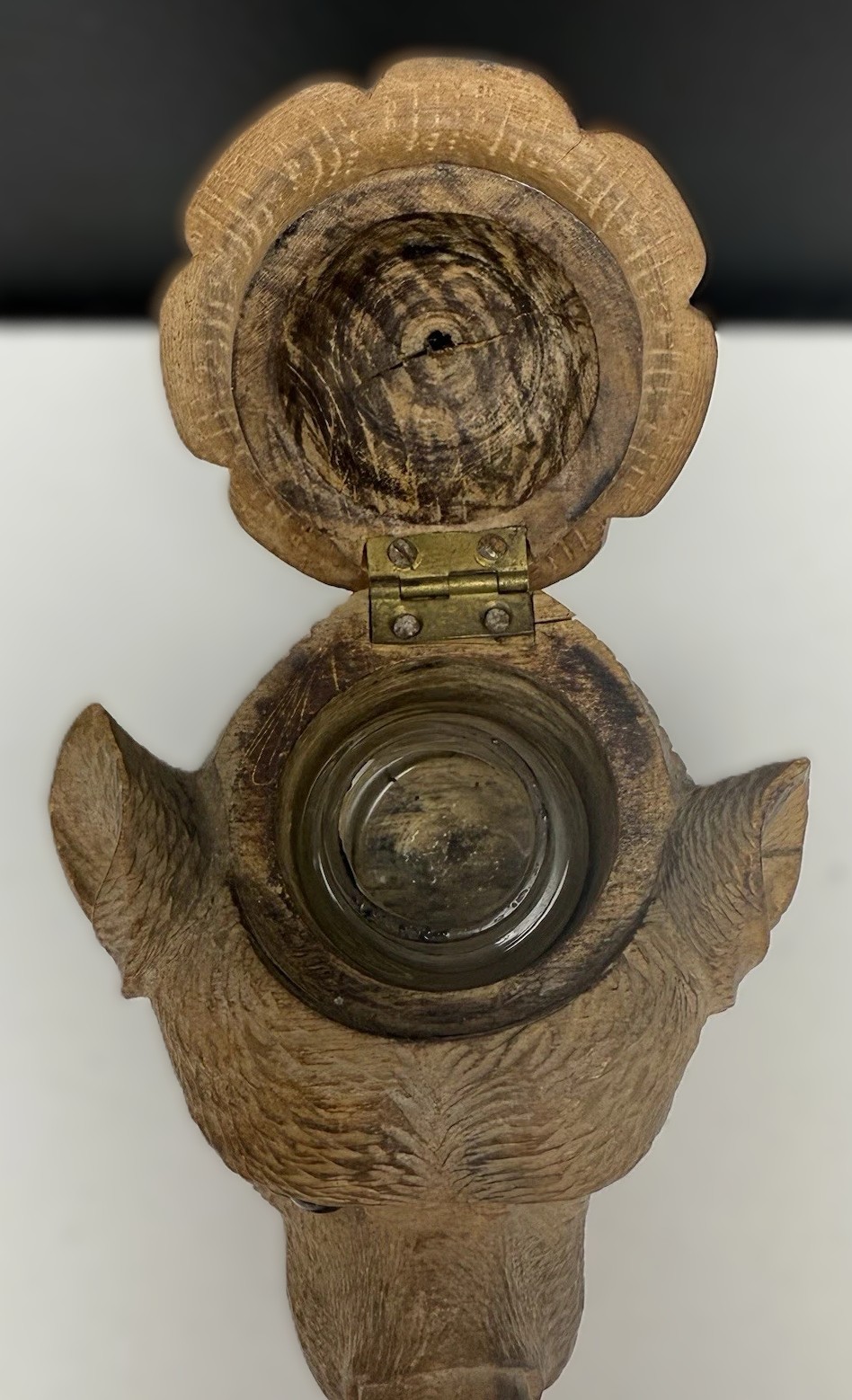 - Origin: This inkwell is from the Black Forest region (Schwarzwald) of Germany or possibly Switzerland. The market for these novelty pieces boomed in the late 19th and early 20th centuries, catering to tourists and the export market.