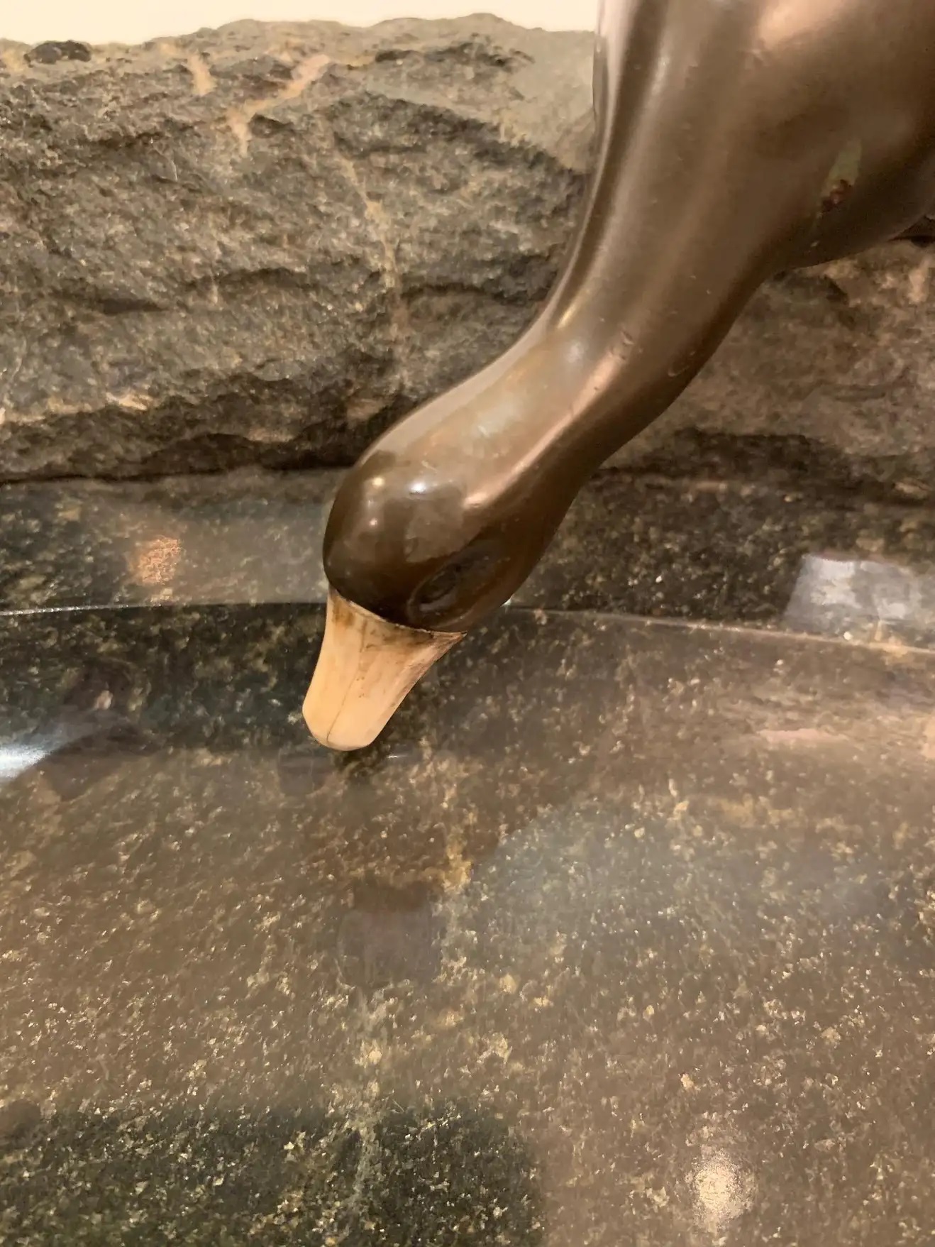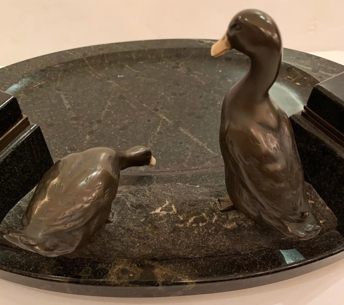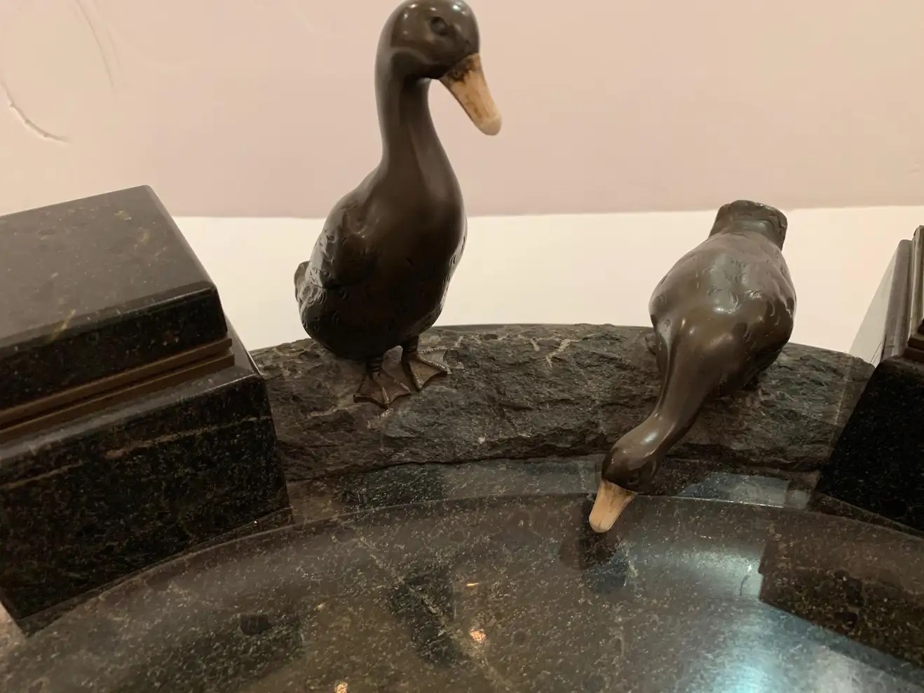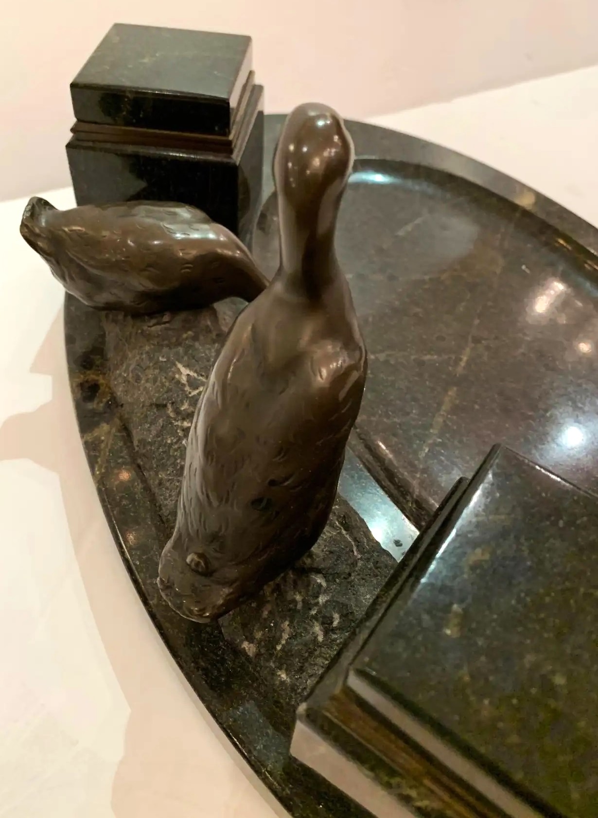 Black Marble Inkstand with Bronze Ducks