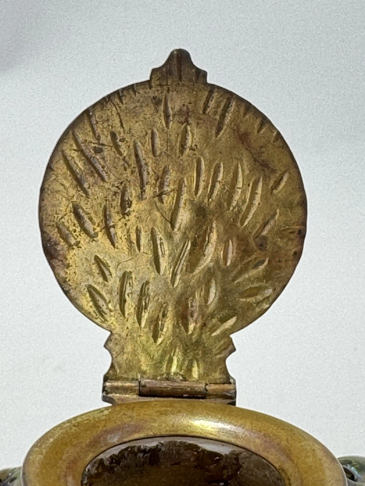 - Kralik: They were masters of the “utility” art glass market. They frequently paired their inkwells with specific patented brass lids. Many Kralik lids carry Austrian or German patent marks (like D.R.G.M. or OE. P.) on the underside. Even when unmarked, the “leaf vein” and “berry” motifs are heavily associated with Kralik’s assembly line.