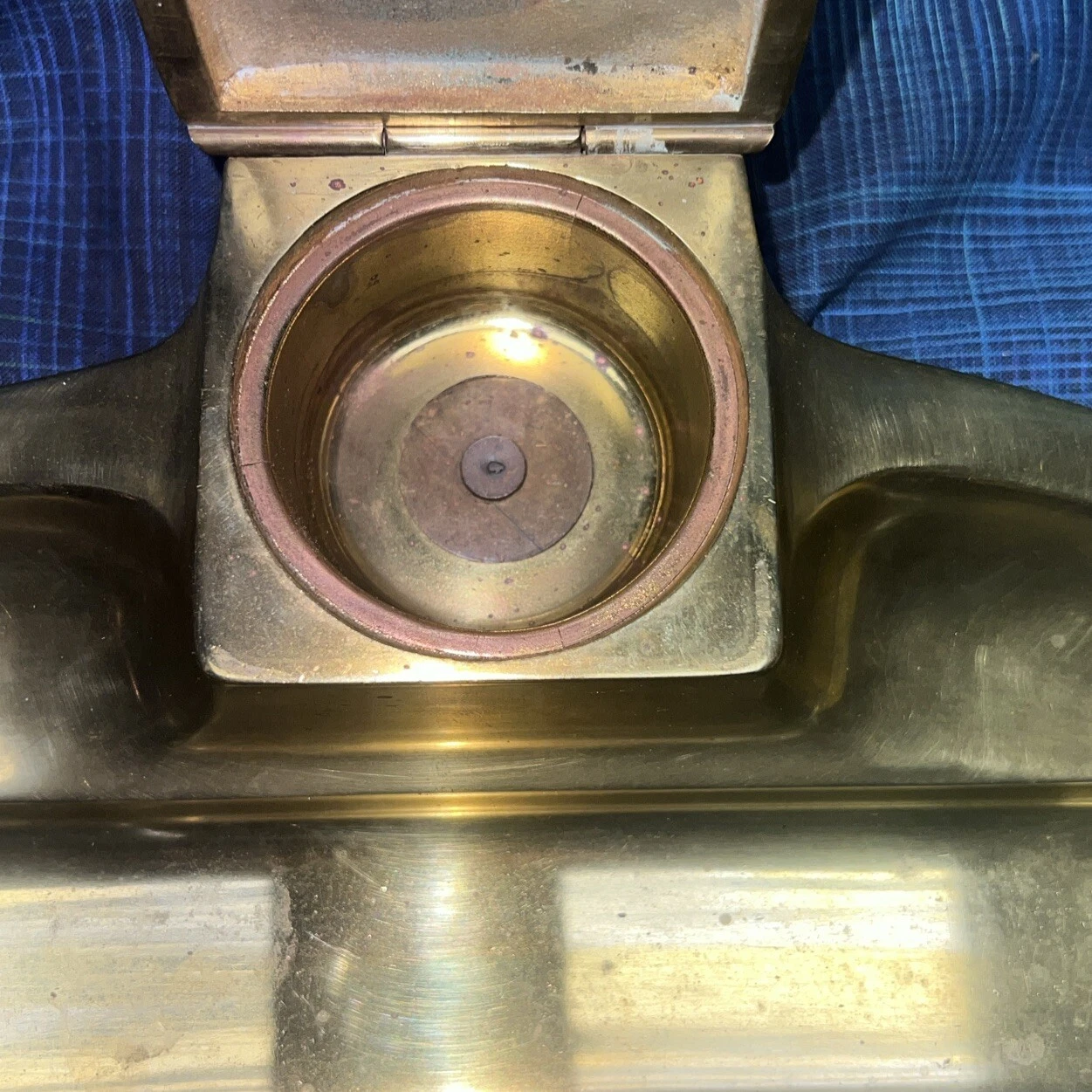 - The Inkwell: A single, smoothly cast brass inkwell sits in the center of the tray.