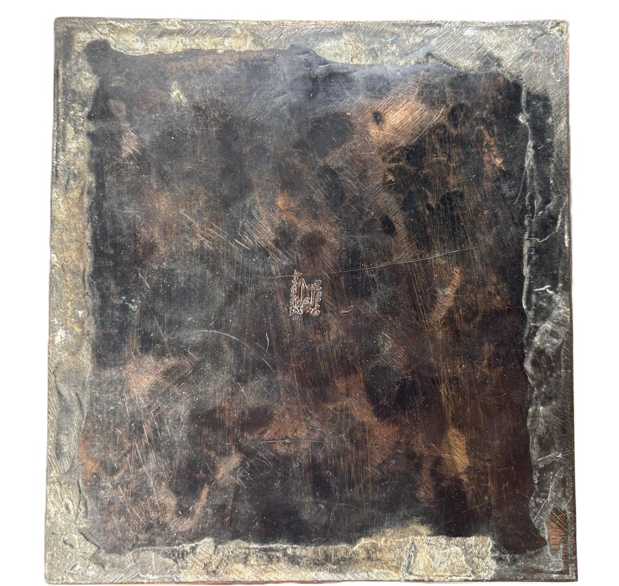 This inkstand was likely made between 1906 and 1912. The “hammer and anvil” mark is the earlier shop mark used shortly after the 1906 acquisition. By 1912, the company’s style began to shift toward “Karnak Brass” (Egyptian-themed) and more traditional silver-plate, moving away from the heavy hand-hammered copper look of the Arts and Crafts era.
