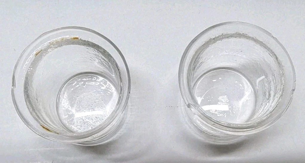 - Inserts: The set includes its original glass inserts with a slight lip, designed to sit flush within the brass holders.