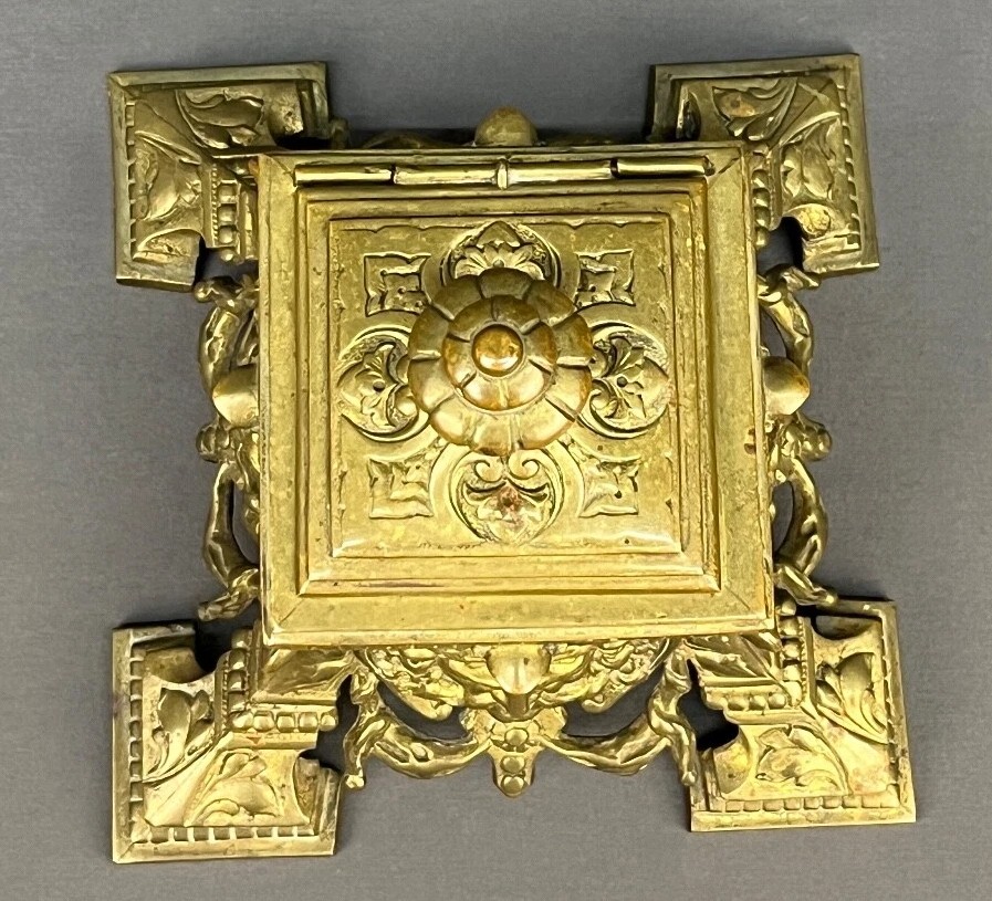 This inkwell is an example of French Neo-Renaissance (also known as “Henri II Style”) decorative art from the mid-to-late 19th century.