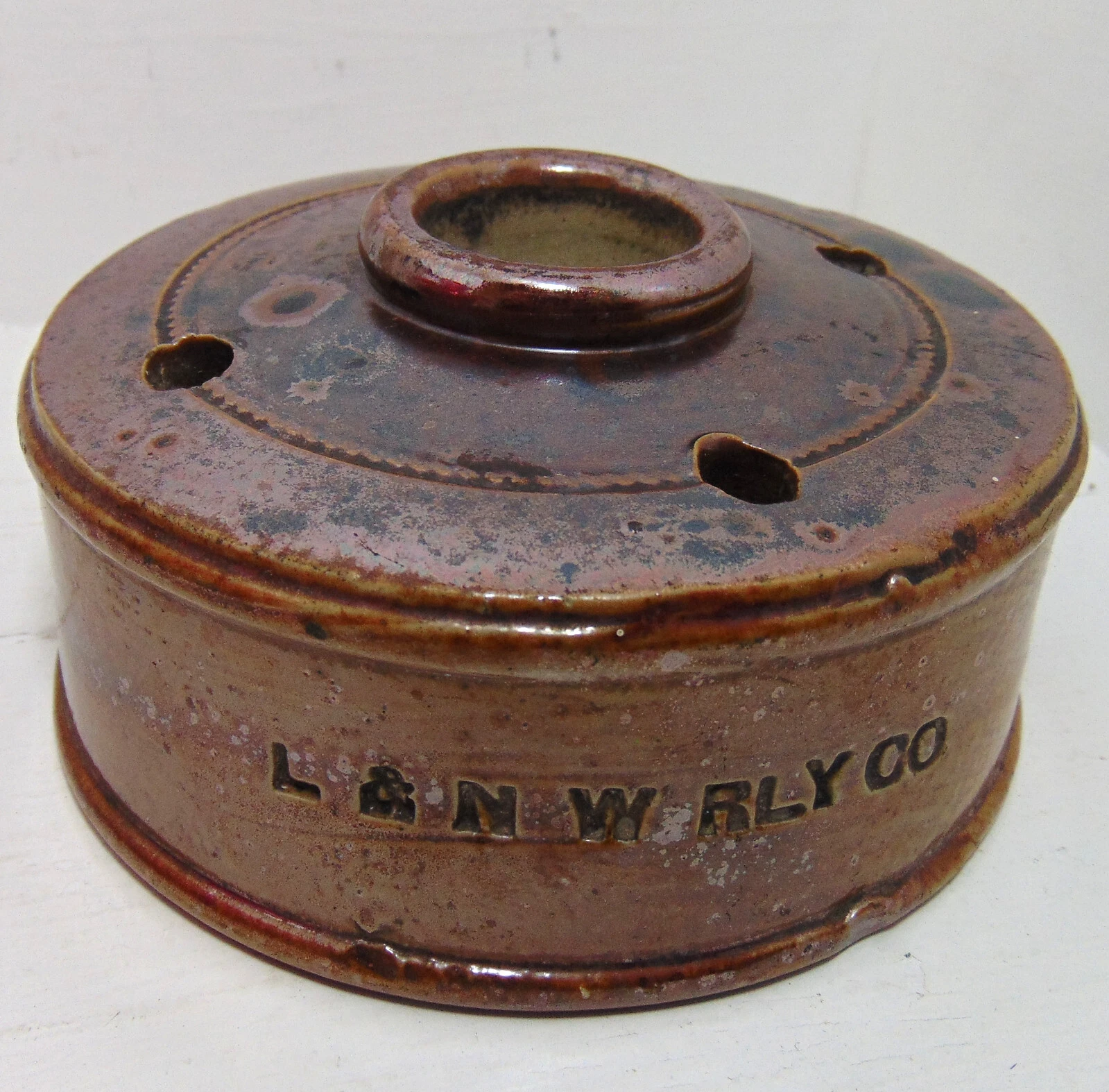 - Marking: The most distinctive feature is the prominent impressed or molded marking on its side: “L & N W RLY CO”. This abbreviation stands for the London & North Western Railway Company.