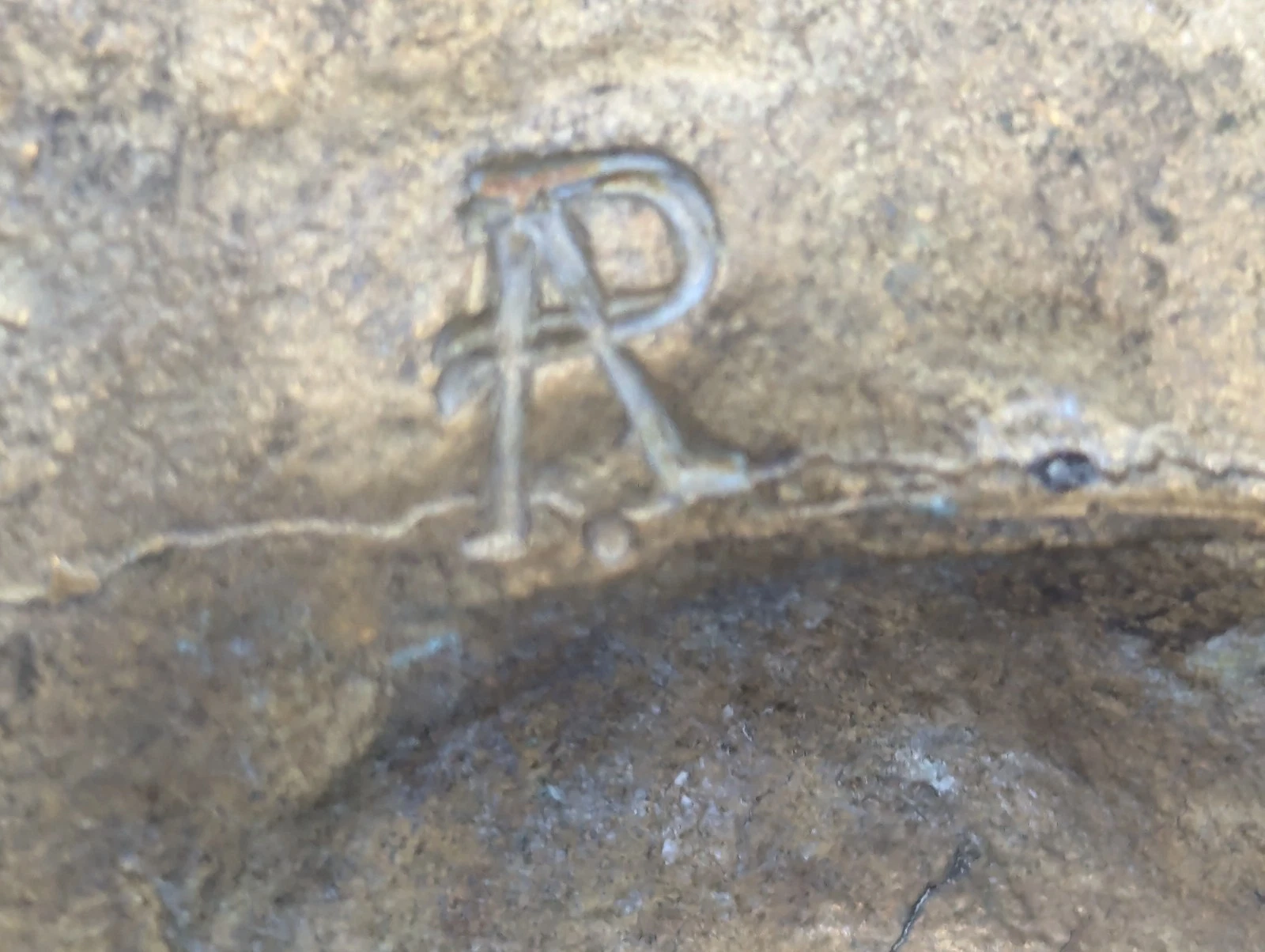 - The Maker’s Mark: Overlapping “A” and “R”: The intertwined “AR” monogram is crisply incised on the underside and likely represents the maker or foundry. Unfortunately, it doesn’t match any widely documented marks from major European or American manufacturers.