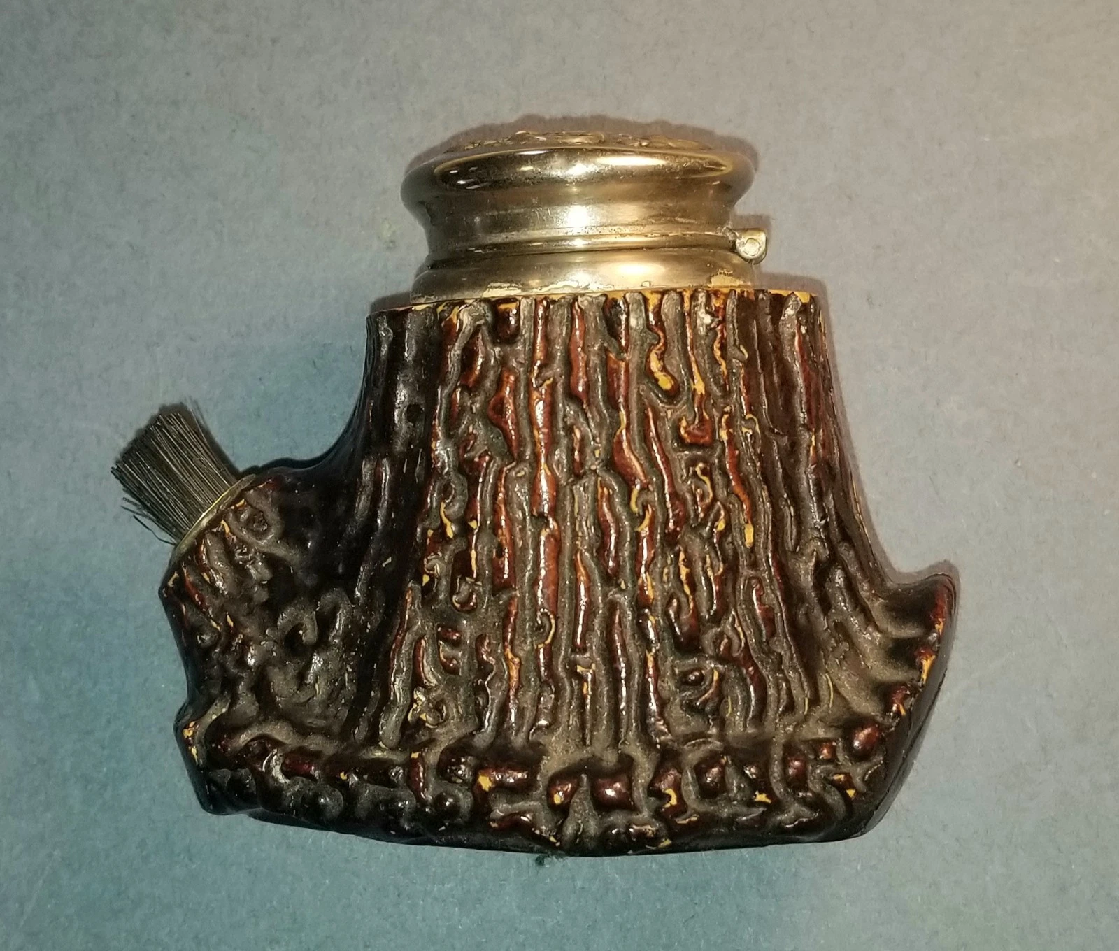• Value: Because of this unique, non-repeating pattern, burl wood has been highly prized by woodworkers and collectors for centuries for use in fine furniture, bowls, and—as seen here—novelty inkwells.