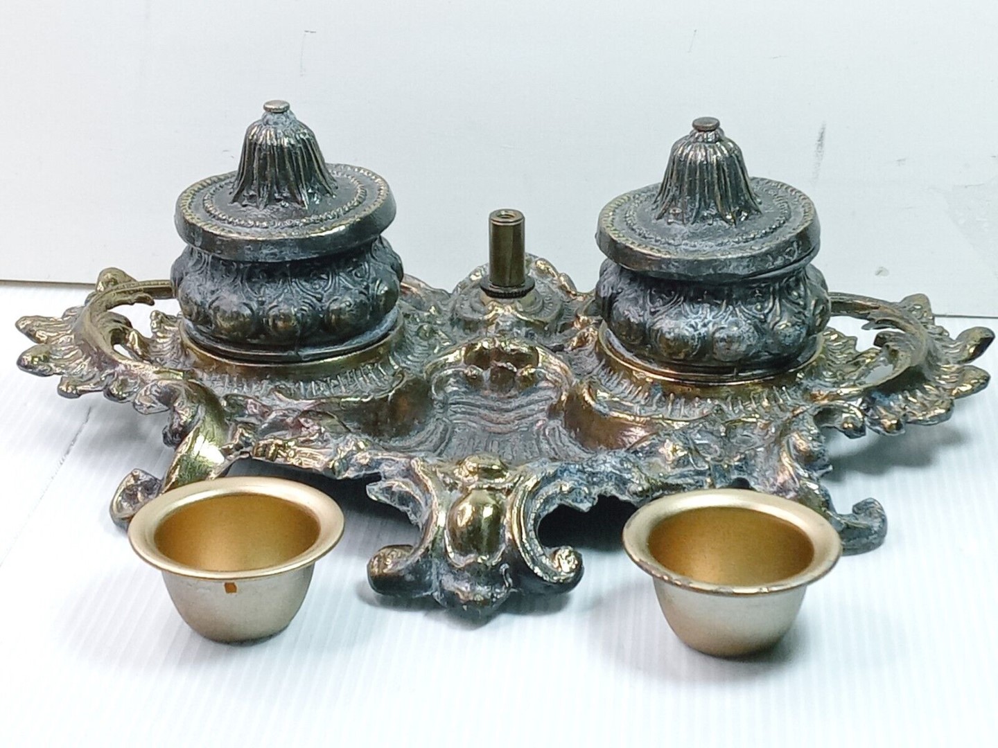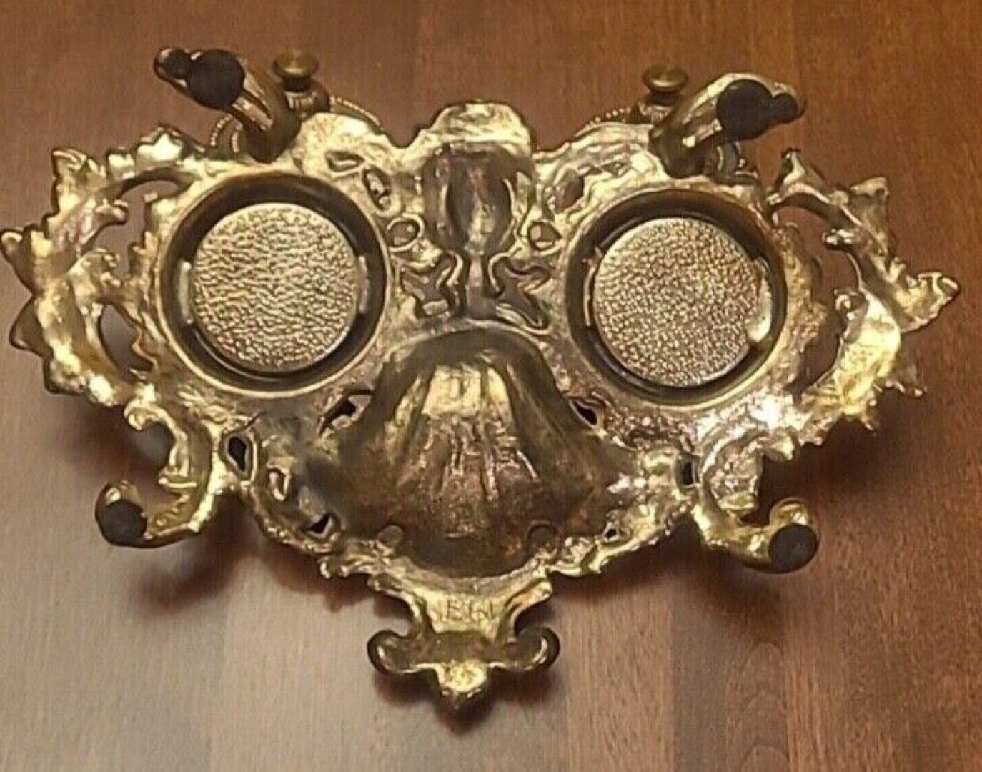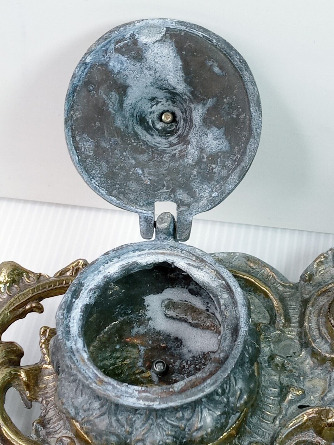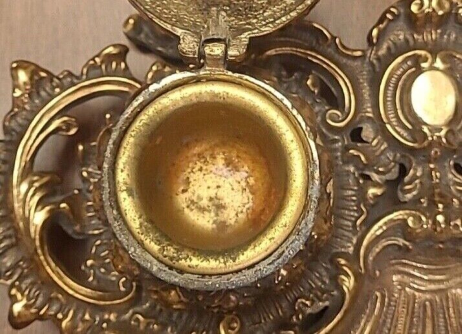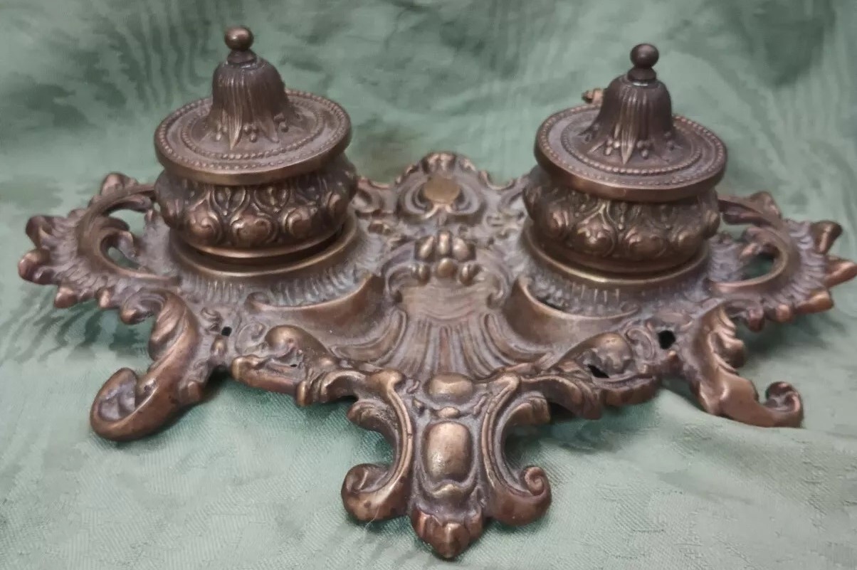 There are so many of these “modern-day” cast brass inkstands out there, it’s hard to know where to begin. Here are three examples of similar inkstands.