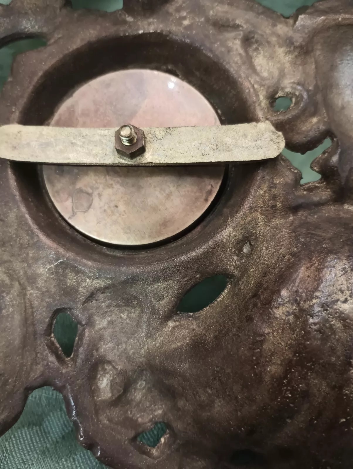The second example is in distressed condition. Do these “modern-day” productions deteriorate so quickly? Or did the seller purposefully distress the piece to make it look old? What we do know is that the piece is marked on the underside “Brite Metal”. (No, that’s not a typo on my part). The seller has it listed at $79.99. But wait! Because I added it to my watch list, the seller has sent me an offer – $70.00 and it’s mine!