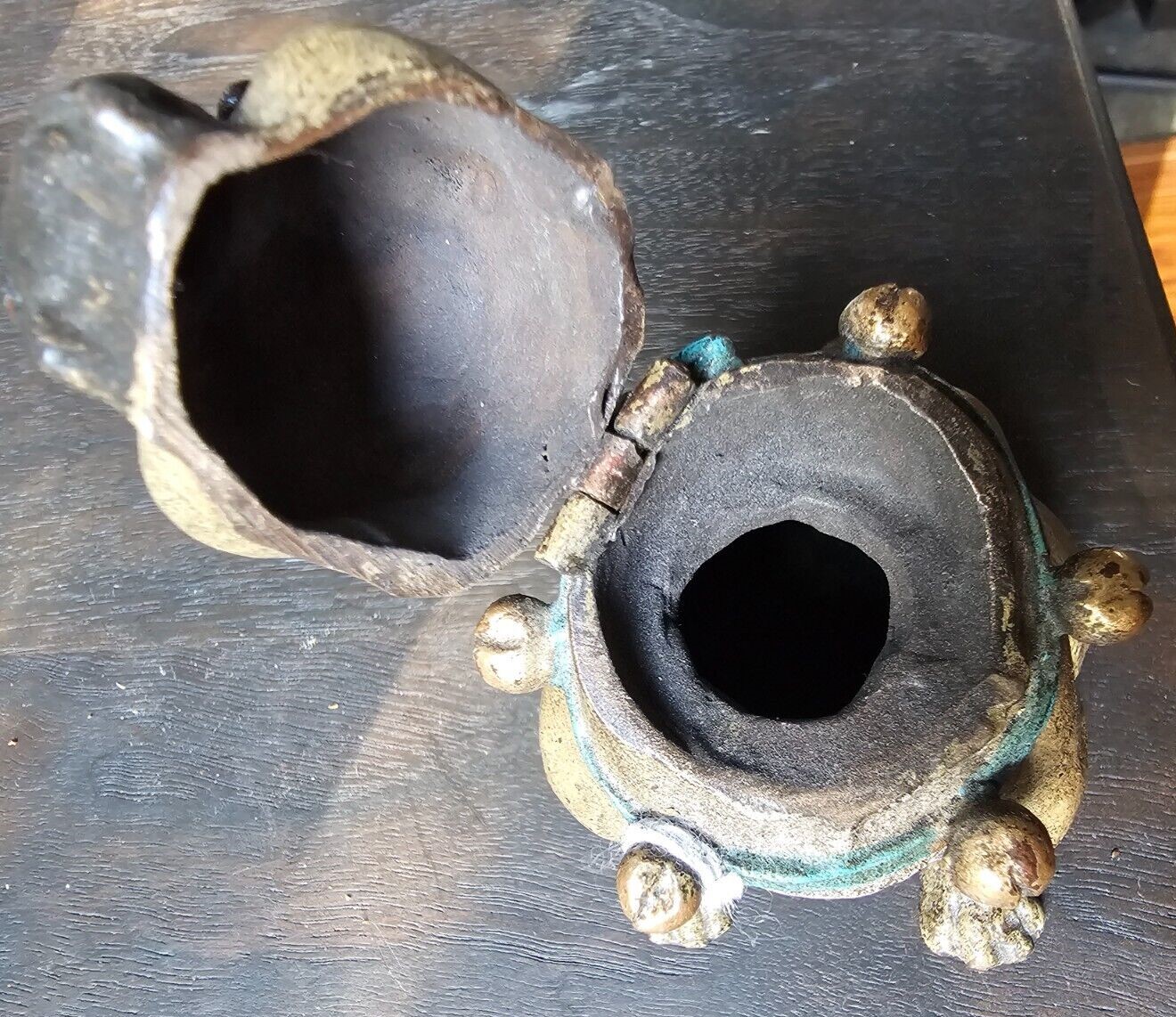 Q. Look at the hinge. It’s too big and heavy for an authentic Austrian bronze. Lift the head – look at the thickness of the metal. And that inside opening for an insert (missing here) is so crudely fashioned!