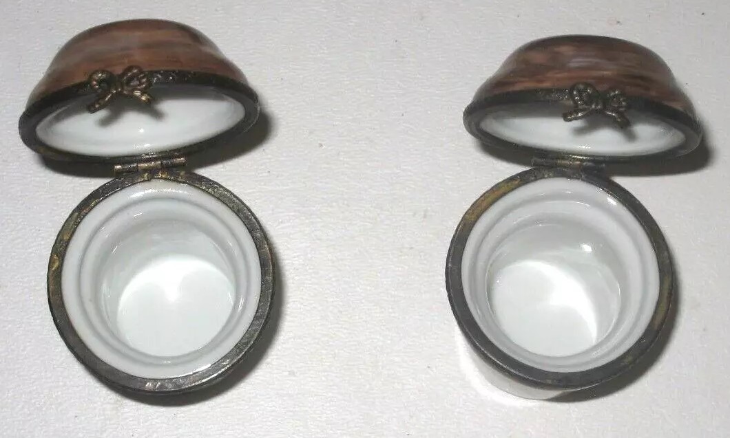 Just be aware that this inkstand is likely of modern vintage – made in Germany circa 1980. Consider the inkwell insert with a metal band around the hinged lid, tied up in a bow. One never sees this with antique porcelain inkwells. Sellers claim this piece is hand painted and that it dates to the late 19th century. Be aware that this piece is not that old. Just because it has a “mark” does not mean it’s antique.